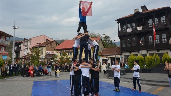 Kortejin ardından Cumhuriyet Meydanında Ulus Belediyesi Spor Merkezi öğrencileri tarafından gösteri programı düzenlendi.